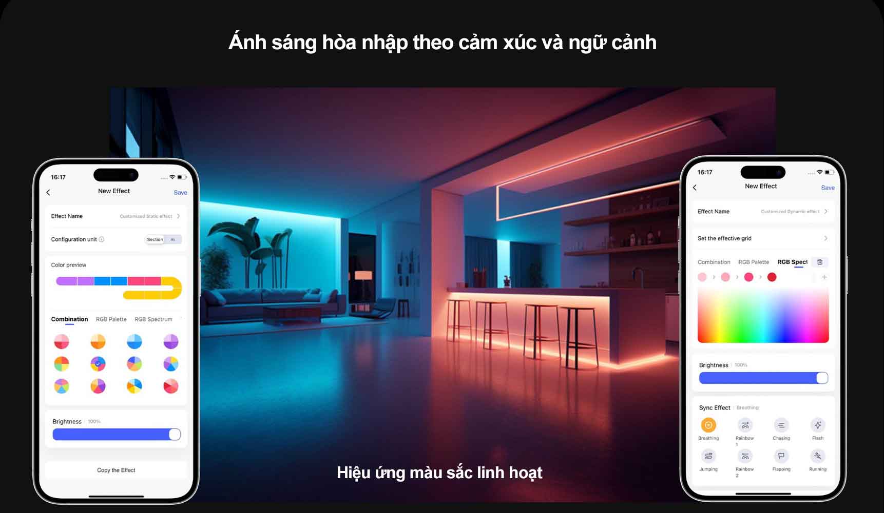 Thỏa sức sáng tạo của bạn với công nghệ RGB+IC vượt trội của Aqara LED Strip T1. LED dây có thể được định cấu hình riêng lẻ với 10 đoạn khác nhau, mang đến cho bạn khả năng kiểm soát tuyệt vời đối với màu sắc, độ mờ, hiệu ứng, v.v. Aqara Lightstrip LED T1 cung cấp nhiều loại hiệu ứng tích hợp sẵn, bạn có thể tùy chỉnh nó ở dạng tĩnh với một màu trên cùng dải đèn (Bao gồm cả màu trắng). Các sự lựa chọn chuyển động màu sắc cũng đa dạng như Rainbow, Breathing, Flash…